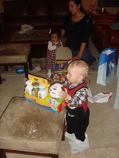 Today, we went to our Hot Mamma's Gift Exchange party as well and I am very bummed because I forgot my camera=( So, Daniel has had plenty of practice on opening gifts this week!